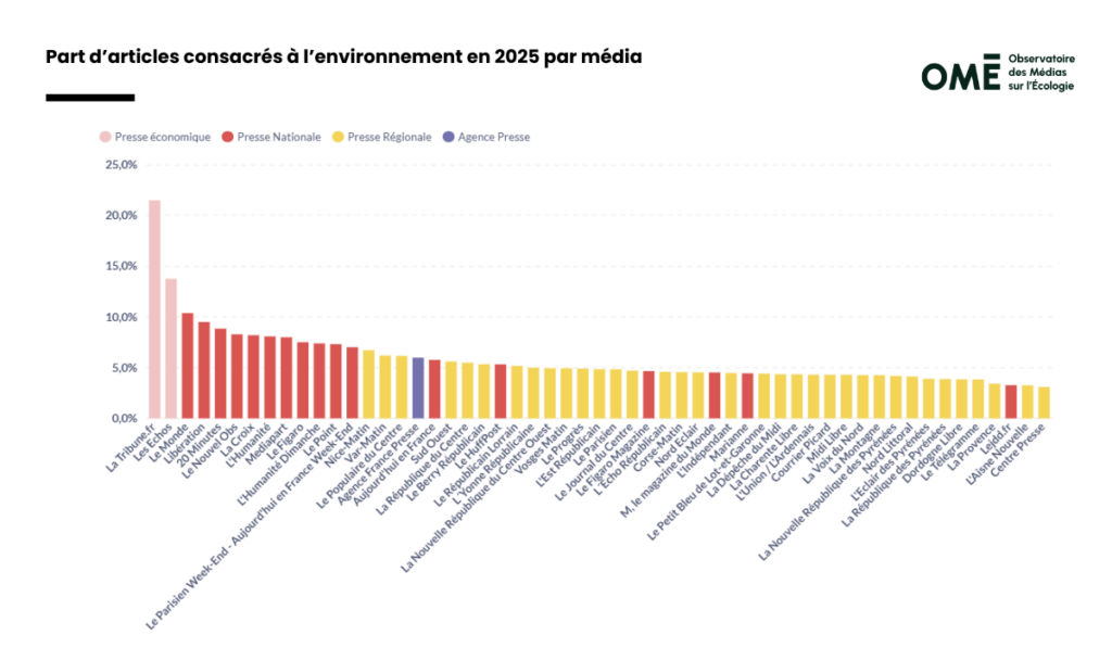 En 2025, 6 % des articles de presse ont couvert les enjeux environnementaux. C’est une moyenne :